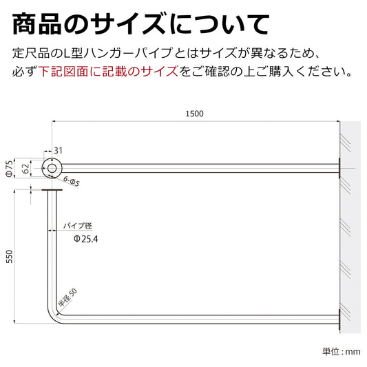 ソケットパイプ サイズオーダー 幅40~90cm φ25mm I字型ハンガーパイプ 納期17営業日程度