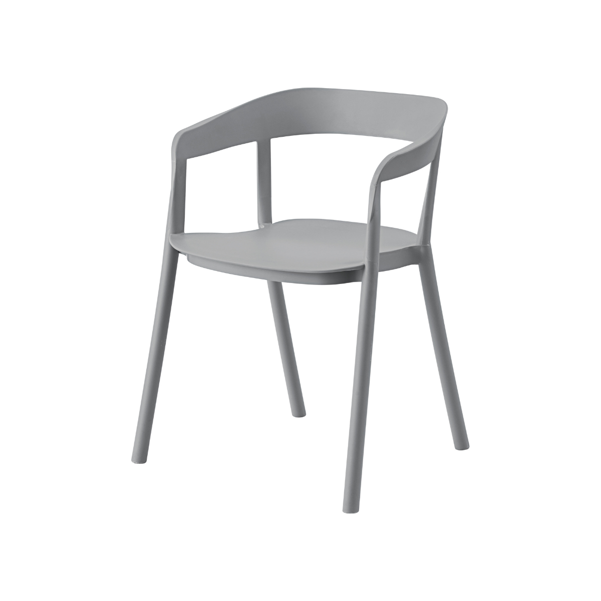 グレーとホワイトのモノトーンでシンプルモダンなアームチェア。スタッキング可能なのでコンパクトにまとめることができます。お手入れしやすいポリプロピレン製。