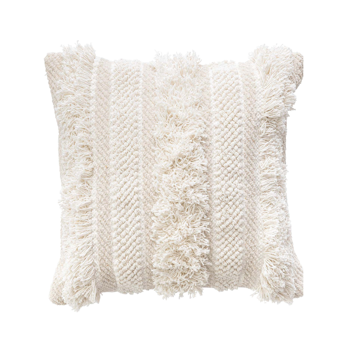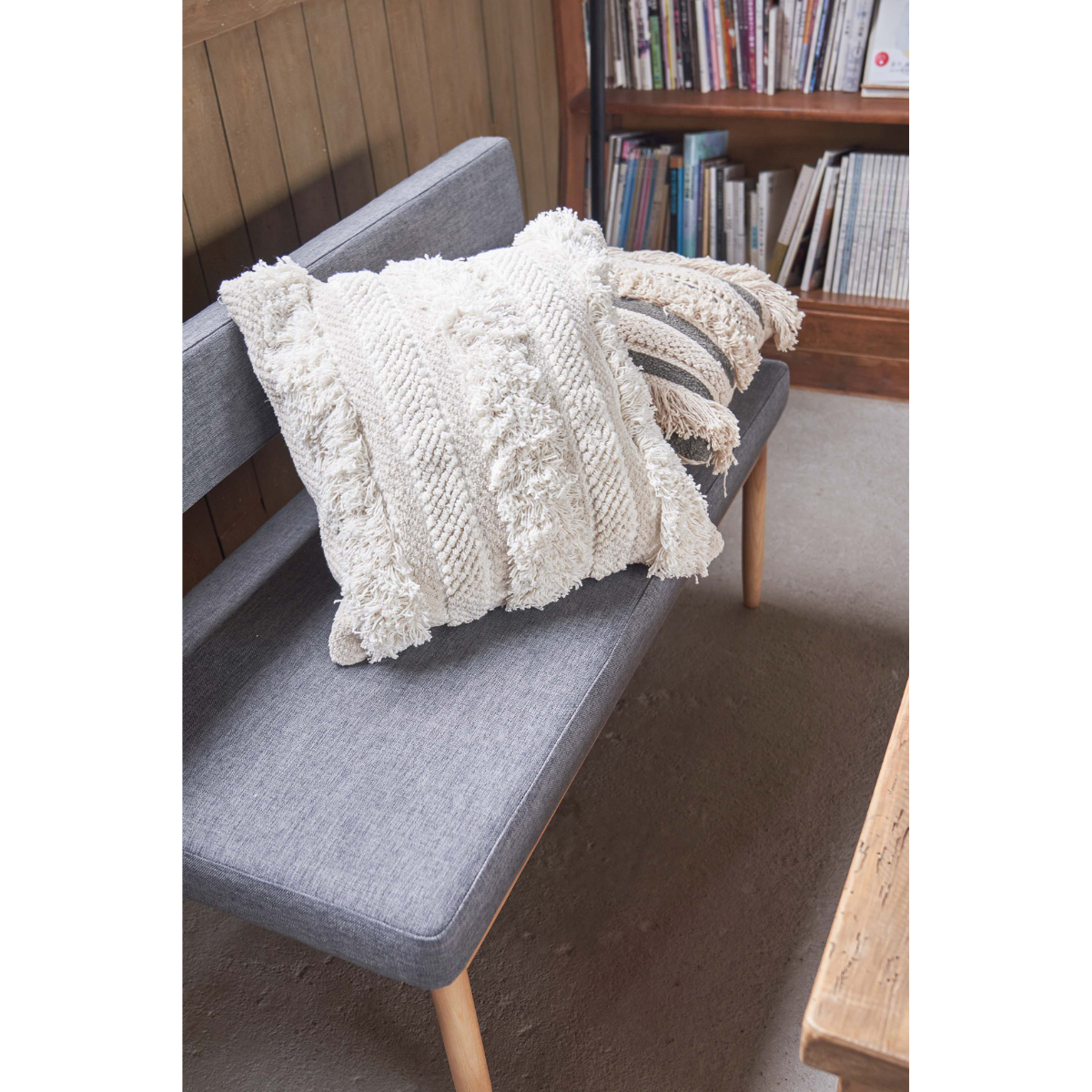 ナチュラルコットンを手織りで丁寧に作られたクッション。織り方を変えて表現された太目のストライプで手触りの良いふわふわとした風合いが特徴。※個体差あり