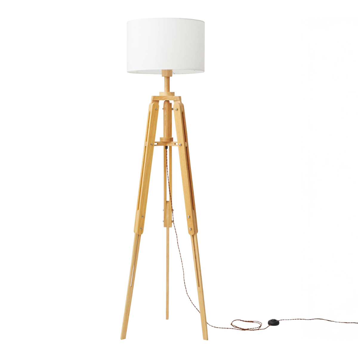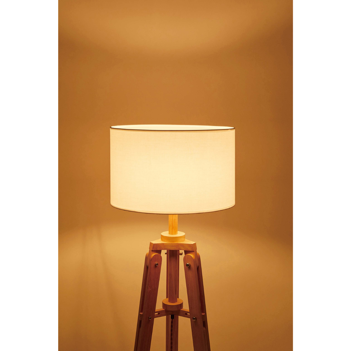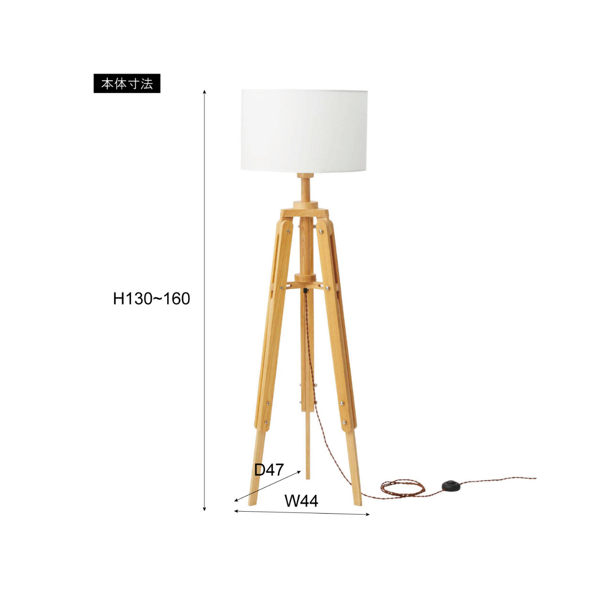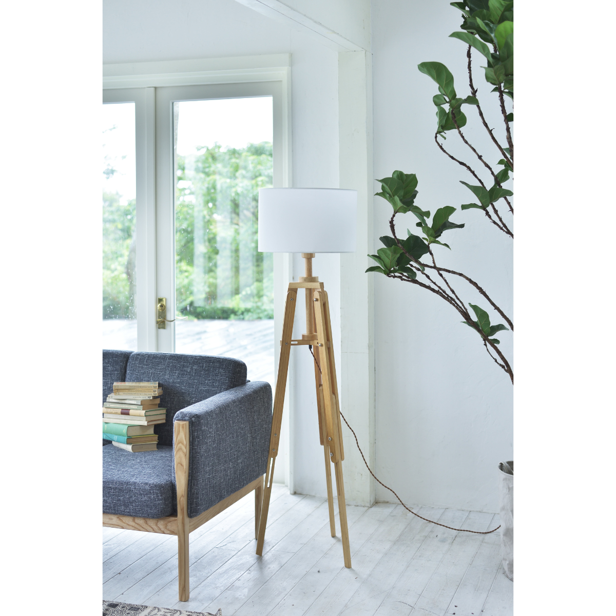 パイン材の3脚とファブリックシェードとの組み合わせがモダンな印象の、フロアスタンドライトです。エジソン電球の柔らかな光がお部屋をあたたかな空間にします。使い勝手の良いフットスイッチを採用。