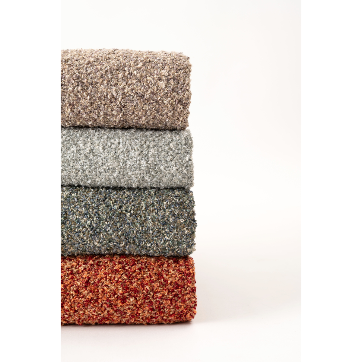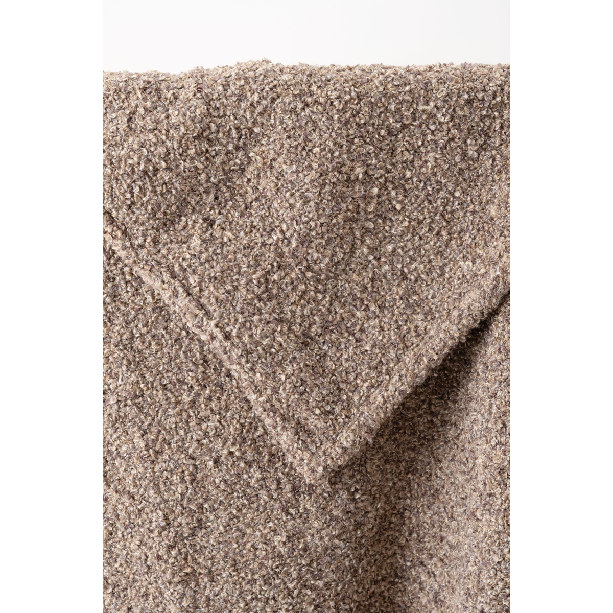 ブークレ生地を使用した2色織の手触りのよいスローケット。130×170cmの大判タイプなので、様々なシチュエーションで活躍。ひざ掛け以外にも、マルチカバーとしてお部屋のアクセントにも。※個体差あり