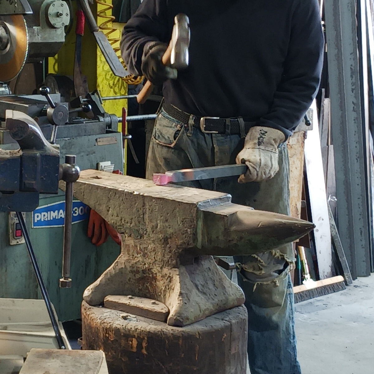 弊社契約の国内工場の職人の方が1本ずつ焼いて、叩いて製作したロートアイアン製のドアハンドルです。機械成型では表現できない形や表情のわずかな違いがございます。デザインは角と丸グリップの2種からお選びください。角グリップの表面は、焼き入れした鉄に塗料を塗ることで、たった一つの偶然の模様が現れます。丸グリップの方はハンマーで叩いて付ける“槌目”に特長がございます。