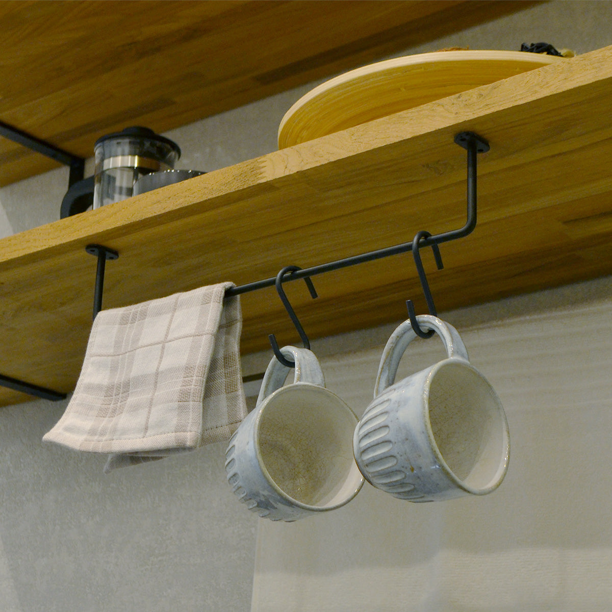 シンプルながらも、オシャレな雰囲気を作るタオル掛けです。市販のS字フックを組み合わせると、小物掛けやツールバーとして多用途にご使用いただけます。壁面とカウンター下、どちらにでも取り付けていただけます。サビに強い塗装を施しているので、水回りでも安心してご使用いただけます。幅166mmタイプもございます。