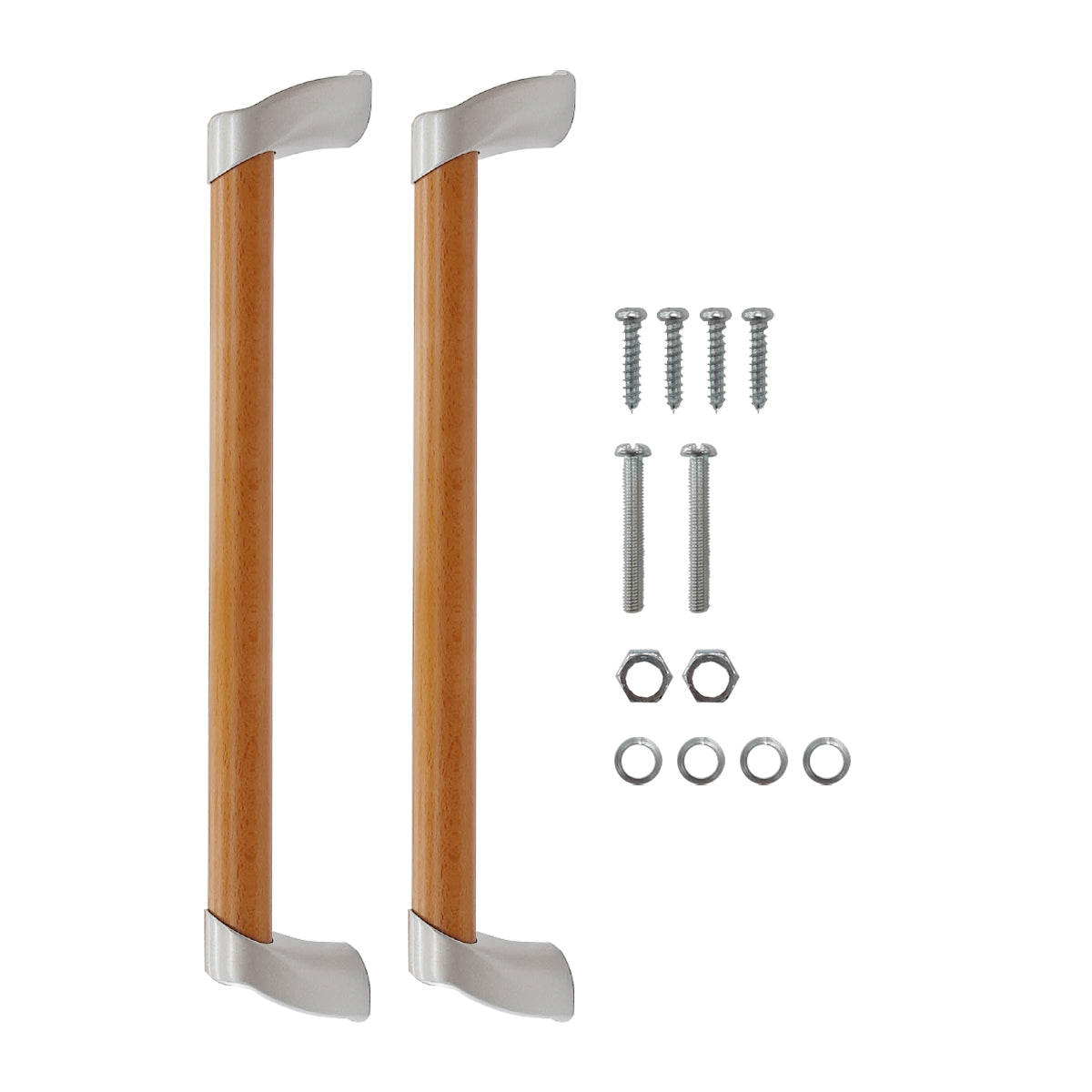 室内の引戸用やドアに使用する木製の大型ドアハンドルです。握り部は高齢者でも使いやすいΦ30。温かみのあるナチュラルウッドを使用しており、抗菌加工されているためトイレなどの衛生面にこだわる場所にもおすすめです。またアタッチメント等の追加部材は無く、付属のタッピンねじを使用することでドアの片面のみに取り付けることも可能です。